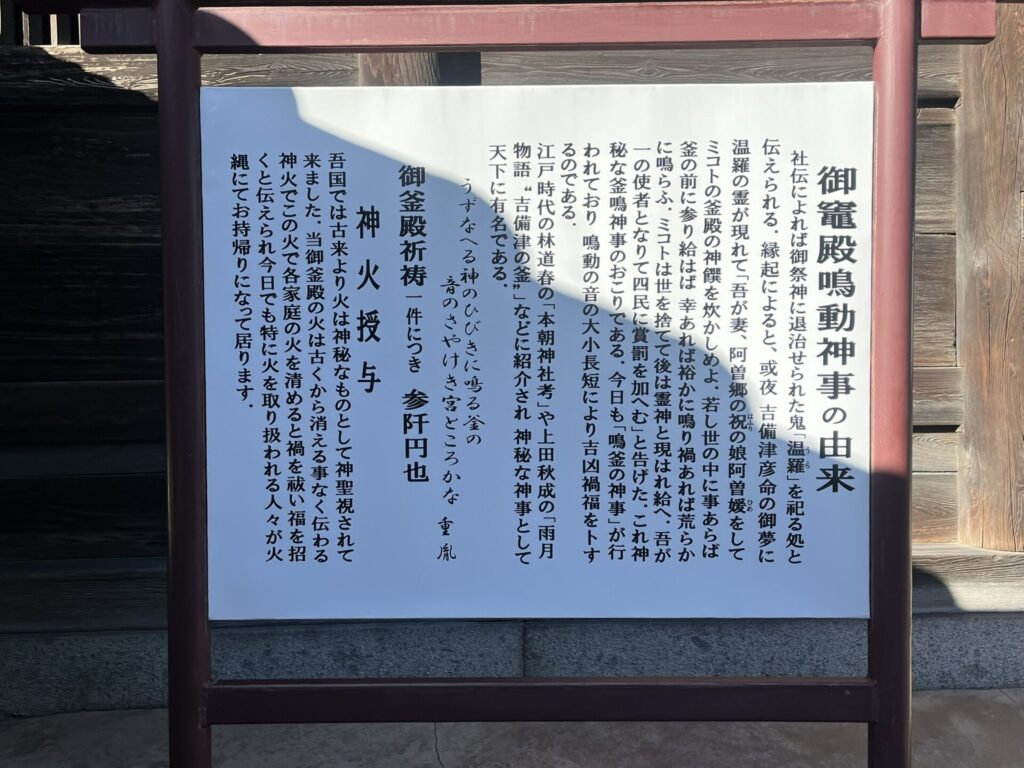 先日、吉備津神社の「鳴釜神事」を知人と体験してきました。